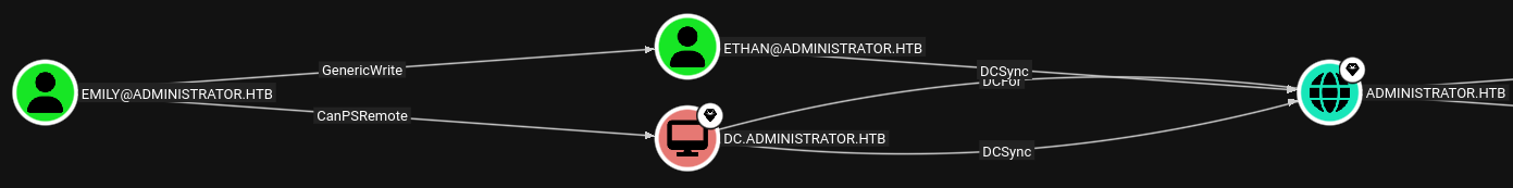 I review the SharpHound data and see that emily has a path to administrator through ethan, so owning the ethan account is my next goal.