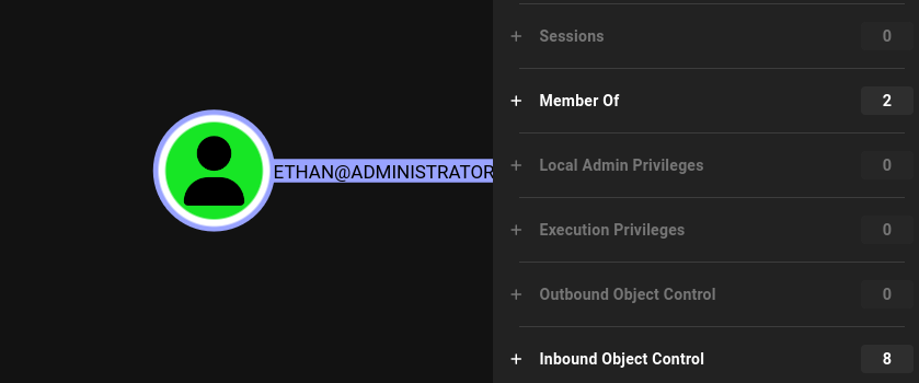 For the most part the data was the same; however, bloodhound.py states that it does not collect GPO local groups, so when we look at the ethan user again, we cannot identify the outbound object controls that allow the DCSync that got us the administrator NT hash. This is a big limitation and one I'll need to consider in the future. Both of these tools have multiple arguments you can provide them to only scan specific sections, so maybe running bloodhound.py initially, then running sharphound -localgpo or whatever the argument may be would be ideal to be as stealthy as possible. I'll also begin reading on how to collect this through LDAP queries to hopefully not have to rely on these noisy tools.