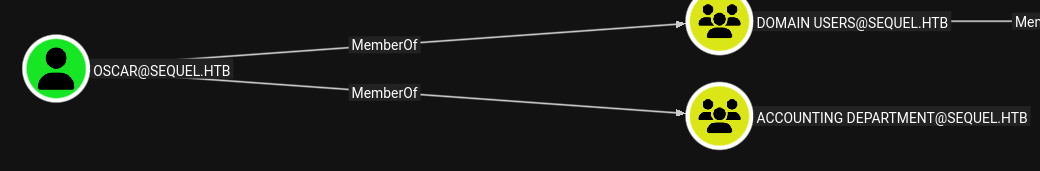 I tried logging in as the oscar user, who has a domain account unlike the other accounting users, but does not have remote logon capability. oscar is a member of the Accounting Department AD group but I cannot figure out if that group has any different access, maybe it is what allows the account to remotely connect to the MSSQL server? I'll show more about what we can do with the credentials after showing some of the other enumeration steps.