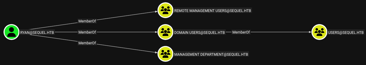 At this point I go on winter break and don't come back to the box for another three weeks. With a fresh perspective I begin digging again and locate a configuration file for the MSSQL database that contains a password for the sql_svc account. Thinking I have nothing else to do with this password, I password spray this across all of the accounts, and wouldn't you know it, its the password to the ryan account. I confirm I have remote access as ryan and begin the process of privilege escalation.
