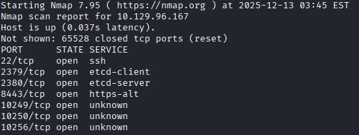 Once the full TCP nmap scan finishes I see that there are some exposed ports that are associated with Kubernetes: