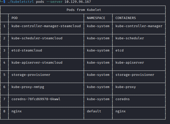 ./kubeletctrl exec "bash" -c nginx -p nginx --server 10.129.96.167